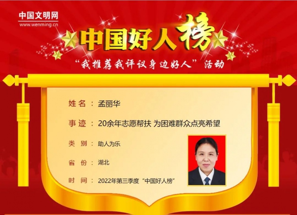 其中,荊門孟麗華上榜!