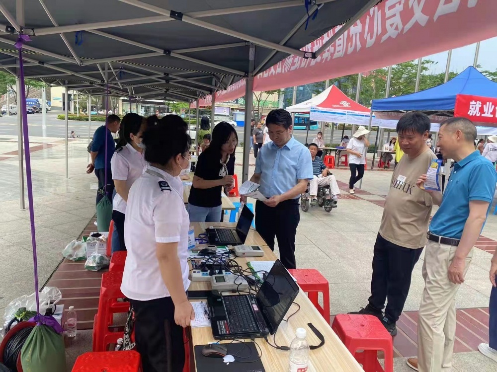 5月20日,荊門市殘疾人聯(lián)合會(huì)在荊門體育文化中心舉辦殘疾人專場(chǎng)招聘會(huì)。市公交集團(tuán)營(yíng)業(yè)中心組織工作人員在活動(dòng)現(xiàn)場(chǎng)設(shè)立臨時(shí)愛心充值驛站,為前來參加活動(dòng)的殘疾朋友和其它市民朋友分別提供愛心卡咨詢、信息登記、年審、掛失和公交IC卡新辦、充值、年審、掛失等服務(wù),同時(shí),積極宣傳推廣荊門公交微信公眾號(hào),方便市民查詢公交咨詢,體驗(yàn)實(shí)時(shí)公交,讓市民告別等車焦慮,從容出行。