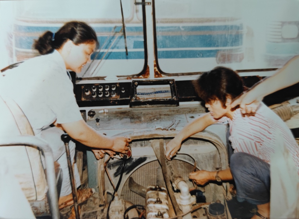 ▲80年代,車間修理工檢修模樣。手上拿著自制試燈(試電筆)檢測(cè)著車輛線路,臉上洋溢著那個(gè)年代的笑容,是樸實(shí)、是堅(jiān)毅。女性修理工可不多見(jiàn)。