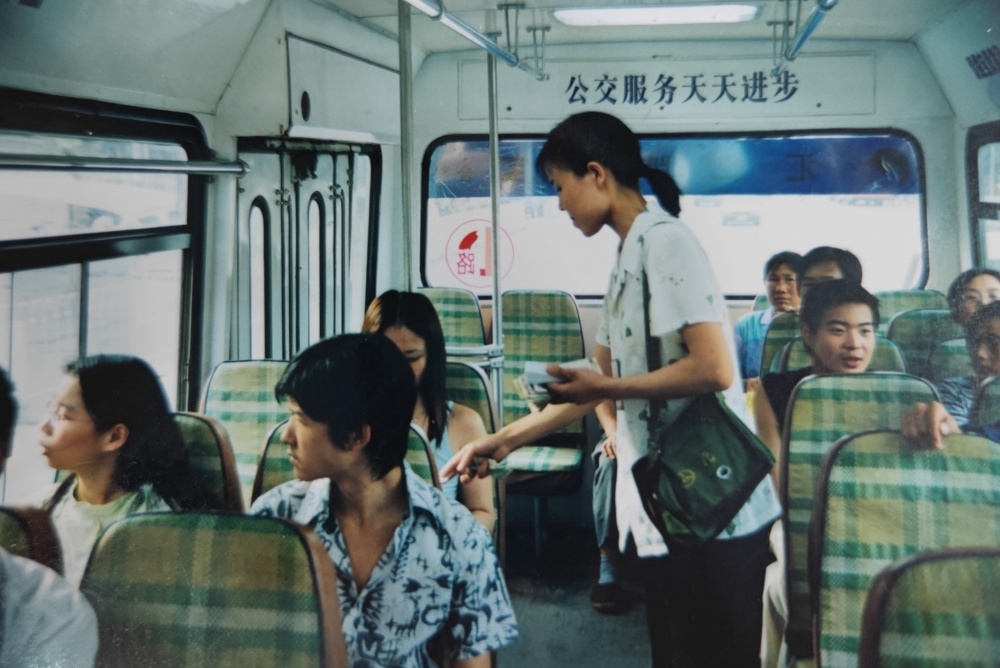 ▲90年代,公交售票員工作模樣??嬷卑种心弥沐X和車票,收錢、找錢、給票、查票行云流水。高峰期數(shù)十人上下車,想要收好票款,無(wú)疑是一種考驗(yàn),而她們久經(jīng)考驗(yàn)。