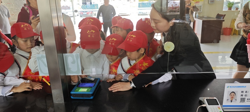 圖/在公交營業(yè)廳,工作人員為同學(xué)們介紹了公交IC卡種類以及“學(xué)生卡”辦理流程,通過實(shí)物演示的方式與同學(xué)們互動問答。