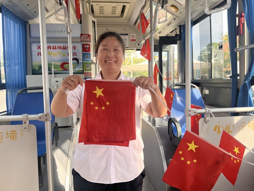 走進(jìn)公交車廂,映入眼簾的是一面面鮮艷的小國旗,輕輕飄動,仿佛在向每一位乘客傳遞著節(jié)日的喜悅和祝福,除了車廂內(nèi)部的裝飾,公交車輛的LED顯示屏也成為了重要傳播窗口,全天滾動播放國慶祝福語。這些細(xì)節(jié)布置不僅為車輛增添了節(jié)日色彩,也讓市民的出行體驗(yàn)更加美好。