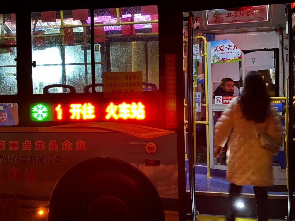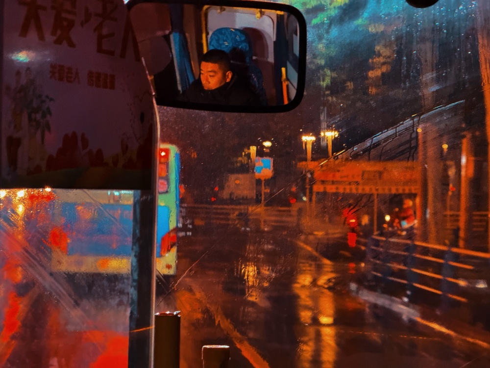圖/雨夜時(shí)的末班車,顯得格外冷清,但面對乘客時(shí)的笑容,可以消除寒冷