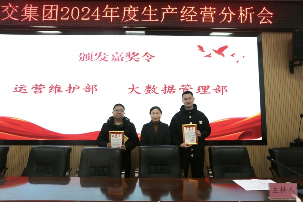 會議第一項(xiàng)議程是頒發(fā)《市公交集團(tuán)嘉獎令》。集團(tuán)黨委副書記、總經(jīng)理李曉麗為運(yùn)營維護(hù)部、大數(shù)據(jù)管理部頒發(fā)嘉獎令,肯定兩個部門在集團(tuán)2024年365輛新能源公交車更新項(xiàng)目中的出色表現(xiàn)。