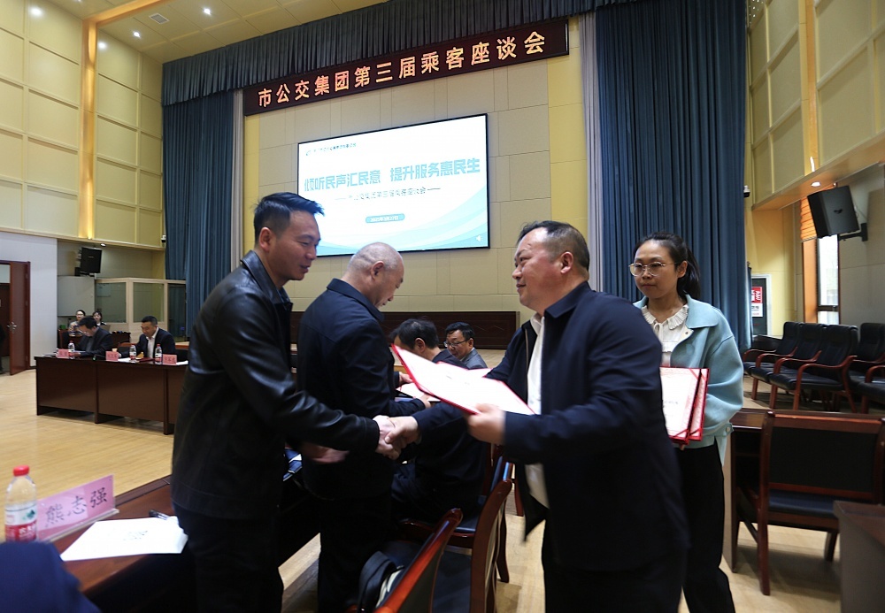 座談會上,集團黨委副書記、總經理李曉麗宣讀了《市公交集團關于聘任劉來斌等九名同志為行風監(jiān)督員的通知》,黨委書記、董事長卞軍虎為劉來斌、薛旭東等9名來自社會各界的代表頒發(fā)聘書。
