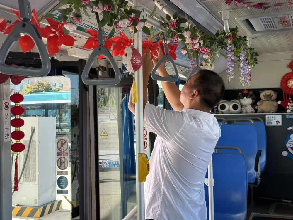 張峻峰是荊門公交2024年度“最美公交人”,他的車上總比別人多點“暖心”東西:駕駛座旁的小盒子里備著暈車藥、創(chuàng)可貼和折疊傘?!敖衲陣鴳c,就想乘客上車能樂呵樂呵?!庇谑菑埦寰蛣恿搜b飾車廂的念頭。他自費買了小國旗、風車、燈籠等裝飾,晚上在家剪剪貼貼,白天利用休息時間在車上裝飾。張峻峰的行動,也是荊門公交服務提升的一個縮影。