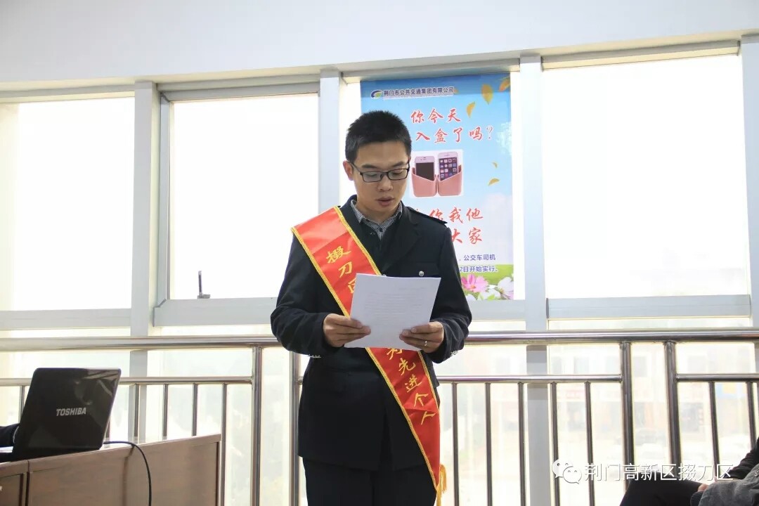 在當(dāng)天的表彰大會(huì)上,荊門市高新區(qū)·掇刀區(qū)政法委副書(shū)記朱曉紅、市公交集團(tuán)有限公司副總經(jīng)理張忠林還分別結(jié)合“10·28重慶萬(wàn)州公交車墜江事故”要求廣大公交駕駛員遵守職業(yè)道德,如何理性對(duì)待無(wú)理取鬧的乘客,遠(yuǎn)離負(fù)能量的人。表?yè)P(yáng)聶聰聰在他人的財(cái)產(chǎn)找到嚴(yán)重危害時(shí),義不容辭的出手相救,有效避免了他人重大財(cái)產(chǎn)損失,并號(hào)召要以身邊的時(shí)代楷模聶聰聰為榜樣,學(xué)習(xí)聶聰聰奮不顧身、見(jiàn)義勇為的高尚品質(zhì),要大力宣傳宣傳見(jiàn)義勇為先進(jìn),以先進(jìn)的事跡感染人、吸引人,以崇高的精神激勵(lì)人、鼓舞人,用實(shí)際行動(dòng)傳遞社會(huì)正能量,為平安掇刀創(chuàng)建作出新的貢獻(xiàn)。