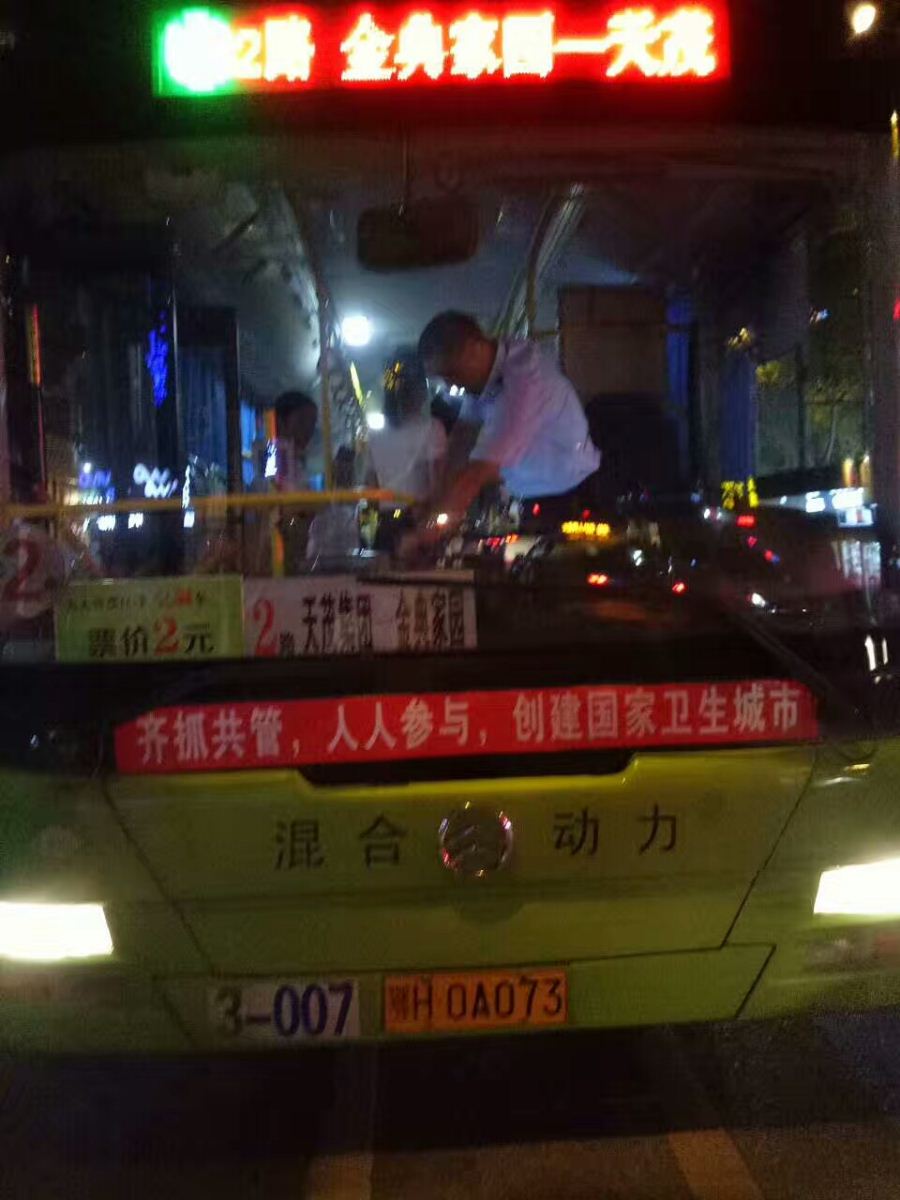 7月21日晚9時(shí)10分左右,公交集團(tuán)三公司2路車駕駛員陳旭駕駛鄂H0A073號(hào)行駛至金地廣場(chǎng)站,突然聽到馬路對(duì)面有人大聲疾呼“著火啦!救火!”,陳師傅忙停穩(wěn)車,只見(jiàn)對(duì)面一的士引擎蓋冒煙起火,他立即拿起公交車上的滅火器快跑到馬路對(duì)面,將出租車的火撲滅。
