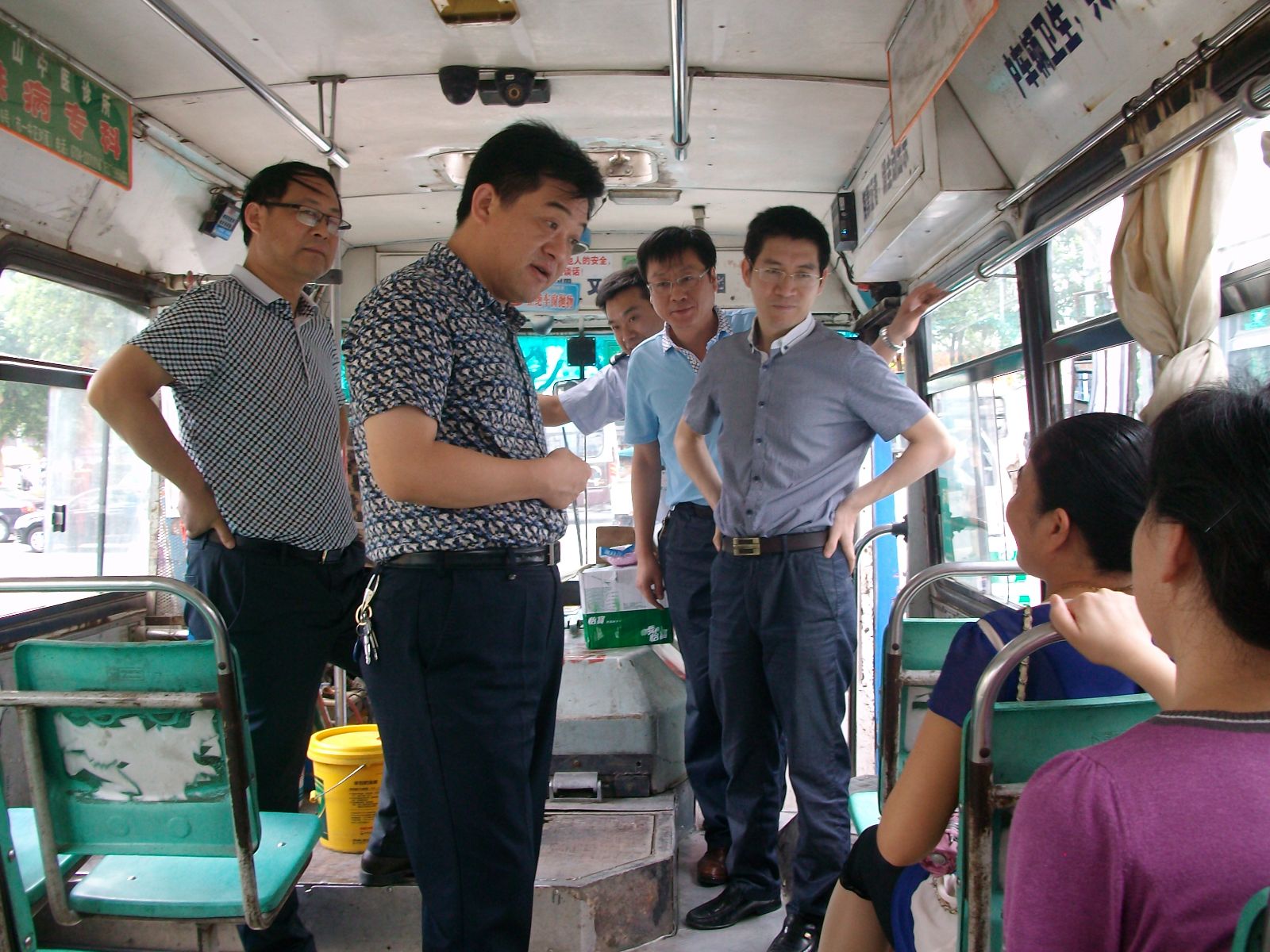 當(dāng)日中午12時(shí),正值高溫時(shí)刻,伍應(yīng)彪等領(lǐng)導(dǎo)冒著炎炎夏日來到?;圮囌?,看望慰問高溫下堅(jiān)守工作崗位的公交職工。在16路、21路、22路線正待發(fā)班的公交車前,伍應(yīng)彪上車與一線駕駛員親切握手,詢問了解駕駛員們的身體和工作情況,并聽取了一公司負(fù)責(zé)人對(duì)改善職工們的工作和休息環(huán)境等工作匯報(bào)。在與駕駛員們親切交談中,伍應(yīng)彪親自為駕駛員們送上了礦泉水、毛巾、人丹、清涼油等防暑降溫用品。同時(shí),他還向部分乘客征求了改善乘車環(huán)境的意見和建議。